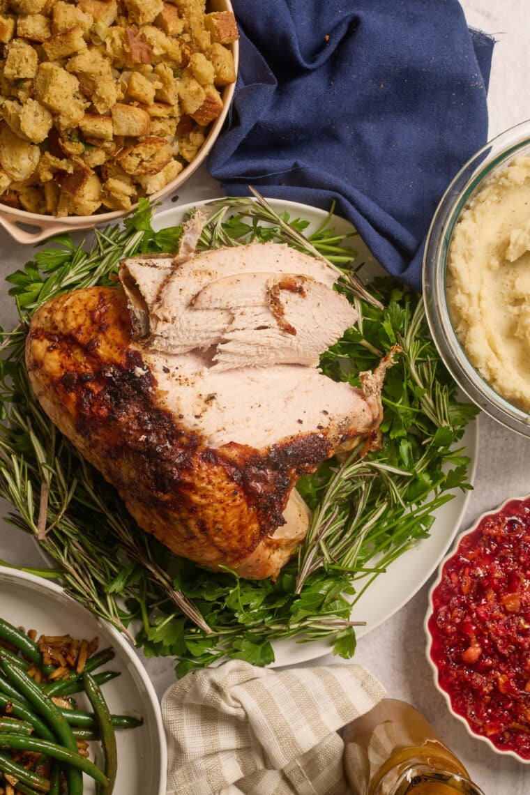 After you have perfectly thawed your turkey, try this incredible smoked spatchcocked turkey recipe, or if you are cooking for a small crowd, bake this juicy oven-roasted turkey breast. Don’t forget the sides to make this meal complete, like green bean almondine, oven-baked stuffing, simple gravy made with turkey drippings, no-cook cranberry-orange sauce, and easy overnight sourdough dinner rolls.